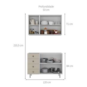 Que tal a Cozinha Maranello?Manter a cozinha organizada fica muito mais fácil quando você conta com móveis pensados para otimizar o espaço: com estrutura de balcão e armário aéreo, o modelo Maranello é ideal para acomodar louças, utensílios, alimentos secos e até mesmo objetos menores nas gavetas, bastando adicionar um tampo para também ter apoio na hora de preparar refeições ou organizar eletrodomésticos. Com tudo ao alcance para a rotina, a beleza da estrutura clássica com coloração leve e elegante também se destaca e deixa o ambiente ainda mais completo, perfeito para reunir a família e desfrutar de momentos especiais em um lar-style que combina funcionalidade e charme. Marca: Modern