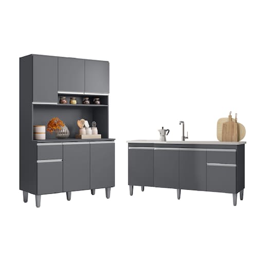 Cozinha Compacta Márcia com Balcão Gabinete Tati 150m para Pia Sem Tampo Cinza - AJL