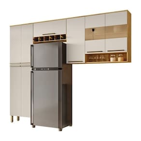 Informação Complementar: 1x Armário Aéreo de Cozinha 80cm com 1 Porta Basculante e Mini Adega 100% Mdf Itália Amêndoa/Off White