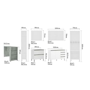 Composta por 6 peças cuidadosamente pensadas para sua organização. Conta com acessórios requintados como puxadores tipo gola, corrediças metálicas telescópicas para abertura total das gavetas e pés em Poliestireno. Os módulos são montados individualmente e permitem a instalação da forma que melhor se adeque ao seu espaço.Características:Corpo/Caixaria: MDPFrontais: MDPDobradiças: Ø35mm.Corrediças Telescópicas: Abertura Total das Gavetas.Puxadores: Alumínio GolaFrontal: Vidro Reflecta Bronze.Pistão a gás de 80N.Bancada Mesa Gourmet: Estrutura em MDP 25mm de espessuraTampo em MDP 25mm de espessuraAcabamento: Concreto - BPCozinha composta por:1-Armário Aéreo 120cm 3 Portas em Alumínio Inox e Vidro Reflecta Bronze Pérola Luciane Móveis1-Armário Perola 80 cm 2 Portas Luciane1-Balcão de Cozinha sem Tampo 80cm 1 Porta Basculante e 1 Gavetão Pérola Luciane Móveis1-Balcão de Pia sem Tampo para Cozinha 120cm 2 Portas 4 Gavetas Pérola Luciane Móveis1-Bancada Mesa Gourmet para Cozinha 150cm X 97cm com 3 Prateleiras Suprema Luciane Móveis1-Paneleiro Perola 40 cm Raso Luciane1-Tampo 80cm em MDP com Acabamento BP Luciane Móveis1-Torre Perola 70 cm Duplo Nicho 3 Potas mais 2 Nichos LucianeNão acompanha tampo de 120 cm.Balcão de Cozinha sem Tampo 80cm 1 Porta Basculante e 1 Gavetão Pérola Luciane MóveisDimensões: Altura: 82,5 cmLargura: 80 cmProfundidade: 53 cmPeso: 29,75 kgTampo 80cm em MDP com Acabamento BP Luciane MóveisDimensões do produto:Altura: 2,5 cmLargura: 80 cmProfundidade: 54,5 cmPeso: 7,9kgPaneleiro Perola 40 cm Raso LucianeDimensões:Altura: 220 cmLargura: 40 cmProfundidade: 36,5 cmPeso: 34,7 kgArmário Perola 80 cm 2 Portas LucianeDimensões:Altura: 75 cmLargura: 36,5 cmProfundidade: 21,2 cmPeso: Balcão de Pia sem Tampo para Cozinha 120cm 2 Portas 4 Gavetas Pérola Luciane MóveisDimensões:Altura: 82,5 cmLargura: 120 cmProfundidade: 53 cmPeso: 59,8 kgTorre Perola 70 cm Duplo Nicho 3 Portas mais 2 Nichos LucianeDimensões:Altura: 220 cmLargura: 70 cmProfundidade: 53 cmPeso: 60,35 kgBancada Mesa Gourmet para Cozinha 150cm X 97cm com 3 Prateleiras Suprema Luciane MóveisDimensões Altura: 97cmLargura: 150cmProfundidade: 54,5cm Peso: 41 KgArmário Aéreo 120cm 3 Portas em Alumínio Inox e Vidro Reflecta Bronze Pérola Luciane MóveisDimensões:Altura: 75 cmLargura: 120 cmProfundidade: 36,5 cmPeso: 30 kgGarantia do Fornecedor: 3 mesesInformações complementares:Fique de olho: siga sempre as orientações do fabricante e utilize seu produto de acordo com o manual. A empresa não se responsabiliza pelo mau uso do produto, o que pode causar perda da garantia.?Certifique se que seus dados estejam atualizados, como endereço e um telefone válido.A entrega será realizada no térreo, sendo assim em prédios o deslocamento da mercadoria, subir escadas, elevadores ou transporte por guincho para apartamentos fica sob responsabilidade do comprador.Todas as nossas entregas são realizadas em horário comercial, não sendo possível fazer agendamento, sugerimos acompanhar o rastreio do pedido e ter alguém para receber no endereço indicado.Não nos encarregamos por montagens, desmontagens e outras instalações, serão de responsabilidade do comprador.