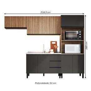 O(a) Cozinha Compacta Mogno 9 Portas 3 Gavetas Montana/Grafite - Quiditá Móveis é produzido em MDP na escala de brilho Semi-Brilho, e possui um grau de dificuldade de montagem: Médio.