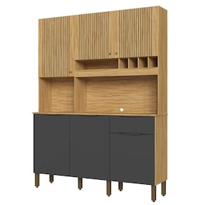 - Portas superiores com acabamento usinado de baixo relevo (frisado) no estilo ripado.