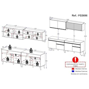 Produto Composto Por: 1 Armário Aéreo 120 Cm, 1 Armário Aéreo Com Portas de Vidro 120 Cm, 2 Balcões Com Tampo 120 Cm, Manual de Montagem E. Kit Ferragem.