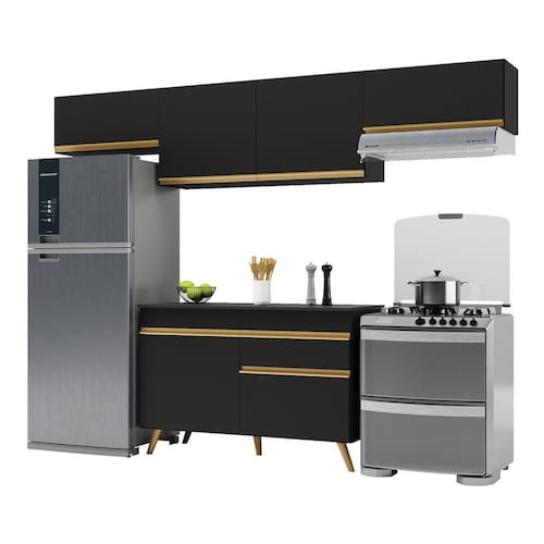 Cozinha Compacta Multimóveis Veneza GB FG3697 com Armário e Balcão Preta - Preto