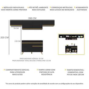 Cozinha - Altura: 203cm | Largura: 260cm | Profundidade: 32cm (aéreos) - 53cm (balcão com tampo)