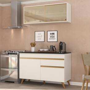 Produto Composto Por: 1 Armário Aéreo Com Portas de Vidro 120 Cm, 1 Balcão Com Tampo 120 Cm, Manual de Montagem E. Kit Ferragem.