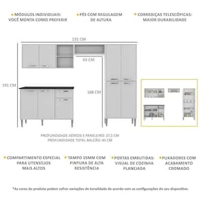 Produto Composto Por: 1 Nicho Horizontal, 1 Armário Aéreo de 105 Cm, 1 Paneleiro, 1 Balcão Com Tampo de 105 Cm, Manual de Montagem E. Kit Ferragem.