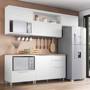 Funcionalidade Máxima Um grande diferencial da Cozinha Compacta Marquesa é o balcão com a maior altura útil do mercado, proporcionando mais espaço para armazenar utensílios e mantimentos. Além disso, seus pés de 10 cm, com regulagem de 2,5 cm, conferem ao conjunto maior robustez.