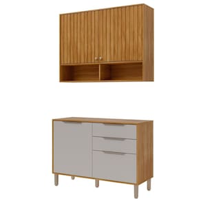 A Cozinha Compacta para Área Gourmet Divina possui 2 peças, é composta por Aéreo 120cm com 02 portas, Balcão 120cm com 02 portas e 02 gavetas. Possui altura total de 174 cm e largura total de 120 cm e profundidade de balcão de 47 cm. Produzida 100% em MDF com detalhes ripados nas portas do aéreo. Esta cozinha faz parte da coleção Inspirar e Trasnformar da MGM Móveis e possui estilo moderno, funcional e prático para inspirar e trasnformar seu dia a dia. Seus puxadores são feitos em ABS na cor Gold que trás um toque sofisticado para sua cozinha. Possui dobradiças 35cm com sistema Soft Close nas portas que permitem um fechamento suave e as gavetas possuem corrediças telescópicas. Acabamento da Prateleira: Pintura UV Escala de Brilho da Prateleira: Fosco Acabamento da Gaveta: Pintura UV Escala de Brilho da Gaveta: Fosco Material do Puxador da Gaveta: ABS Acabamento da Porta: Pintura UV Escala de Brilho da Porta: Fosco Material do Puxador da Porta: ABS Acabamento dos Pés: Pintura Acompanha Rodapé Decorativo: Não Acompanha Tampo: Sim Altura dos Pés: 17 cm Ambiente Principal: Cozinha Balcão Suporta Pia: Não codigo_ean: 7900288142757 Complexidade da Montagem: Média: pode ser montado por mais de uma pessoa e/ou necessite de maior conhecimento para montagem Cor: Cinamomo /Offwhite Cor do Produto: Cinamomo /OffWhite Cor Flex: Não Cor Interna: Cinamomo Escala de Brilho: Fosco Espessura do Material da Estrutura: 15 mm Espessura do Tampo: 15 mm Gaveta com Chave: Não Itens Inclusos: 01 Aéreo e 01 Balcão Linha ou Coleção: Inspirar e Transformar Manual de Especificação Técnica: https://cdn2.madeiramadeira.com.br/atributo/mgm-moveis/2911374-5285-17467002985843.pdf Manual de Montagem e Instalação: https://cdn2.madeiramadeira.com.br/atributo/mgm-moveis/2911373-5285-17467002947072.pdf Marca: MGM Móveis Material da Corrediça: Metálica Material da Dobradiça/Corrediça da Porta: Metálica Material da Gaveta: MDF Material da Porta: MDF Material da Prateleira: MDF Material do Fundo: HDF Material do Tampo: MDF Material dos Pés: ABS Medida de cada item (A x L x P): Aéreo 90 x 120 x 32; Balcão 84 x 120 x 47 modular: Sim Montagem Flex: Nâo Necessita Montagem: Sim O Balcão Acompanha Pia: Não Origem do Produto: Nacional Pés Reguláveis: Sim Peso: 79,8 kg Peso Máximo por Gaveta: 5 kg Peso Máximo por Prateleira: 5 kg Possui Pés: 05 Possui Portas: Sim Possui Prateleiras: Sim Possui recorte para Cooktop: Não Possui Rodízio: Não Possui Vidro: Não Recomendações de Uso, Manutenção e Limpeza: Utilizar pano umidecido Sapatas Niveladoras: Sim Sistema de Montagem: Parafusos, Cavilhas e Minifix Suporta Até (kg): 25 kg Tamanho Indicado da Pia: N/D Tipo de Corrediça da Gaveta: Telescópica Tipo de Dobradiça da Porta: Soft close Tipo de Puxador da Gaveta: Externo Tipo de Puxador da Porta: Externo