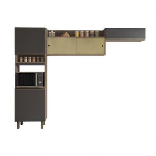 Cozinha Compacta Porto Carvalho/grafite - Poliman A Cozinha Compacta 5 portas com nicho micro-ondas Porto Poliman Móveis foi desenvolvida para trazer um designer moderno com qualidade e praticidade ao seu ambiente, com altura e profundidade diferenciadas é composta por um paneleiro com espaço para micro-ondas (A. 42cm x L. 57,5cm x P. 36 cm ) além de 2 portas de bater e nicho decorativo. O armário aéreo possui 2 portas de correr em vidro reflecta, tipo espelhado, detalhe que traz beleza e sofisticação ao produto e nicho aberto prático para o dia-a-dia para armazenamento ou decoração, a montagem do módulo pode ser com o nicho para cima ou para baixo. O armário aéreo 1 porta basculante tem pistão a gás permitindo uma abertura mais suave que mantém a porta suspensa para melhor aproveitamento de espaço que pode ser sobre fogão ou geladeira. Possui puxadores perfil em polímero bronze, dobradiças reforçadas de 35mm e pés PVC 13cm reguláveis ao piso permitindo o nivelamento perfeito na montagem. Produto em MDP Perffect Touch de maior resistência e com proteção Bacterban que inibe a proliferação de fungos e bactérias na superfície do móvel e portas em MDP com acabamento pintura UV. Produto ecologicamente correto com embalagens preparadas para evitar e permitir que o produto chegue em perfeito estado em sua casa. Perfeita combinação com os mais variados ambientes. Qualidade que só a Poliman oferece em seus produtos. Produto: Cozinhas Compactas | Altura: Não | Garantia: 90 Dias | Cor: Marrom | Fabricante: Poliman Móveis | Portátil: Não | Largura: 2,6 | Profundidade: 0,38 | Tonalidade: Marrom | Material: Madeira | Modelo: Cozinhas Compactas | Peso: 52,9 | Quantidade de gavetas: 0 | Quantidade de Portas: 0 | Tipo de móveis de cozinha: Armário/Balcão | Requer montagem: Sim | Acompanha Pia de Cozinha: Não | Comodo Indicado: Cozinhas