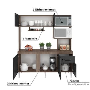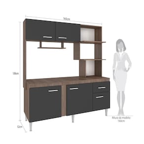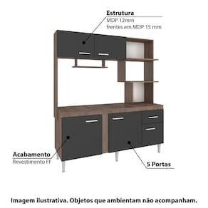 Características - Teka/Grafite - Estrutura: MDP 12 mm e portas em MDP 15 mm - Acabamento: Finish Foil - Fosco - 5 Portas - 1 Gaveta - 1 Prateleira - 3 Nichos externos - 3 Nichos internos - Dobradiças e corrediças metálicas - Peso suportado: 50 kg - Móvel entregue desmontado - Marca: Fellicci