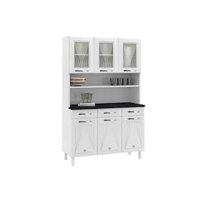Kit de Cozinha Compacta Star New c/ 6 Portas (3 c/ Vidro) e 3 Gavetas 120cm Branco/Preto - Telasul