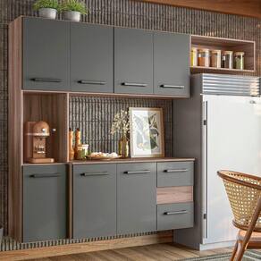 Cozinha Compacta Suspensa Juliete 7 Portas 2 Gavetas Nicioli Carvalho Nature/chumbo