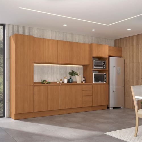 Cozinha Compacta Valence 16 Portas 3 Gavetas Canela - Marrom