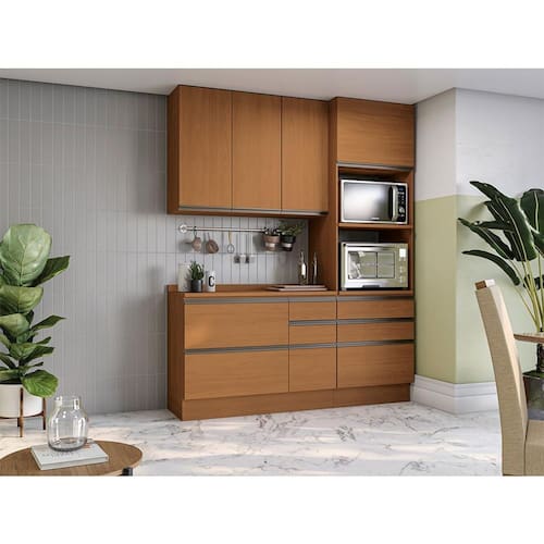 Que tal a Cozinha Valence?Com a Cozinha Valence, você tem tudo o que precisa em um único móvel para manter utensílios, louças e mantimentos sempre organizados e ao seu alcance. Os nichos espaçosos acomodam itens maiores, enquanto as gavetas são ideais para guardar talheres, panos de prato e pequenos acessórios do dia a dia. Além disso, o tampo oferece um suporte extra, perfeito para auxiliar no preparo das refeições ou até mesmo para apoiar itens decorativos. Tudo isso sem comprometer a harmonia do ambiente, já que tem um design charmoso e cor neutra que caem bem com os outros móveis e acessórios que já compõem o cantinho. Marca: Modern