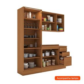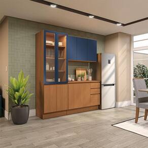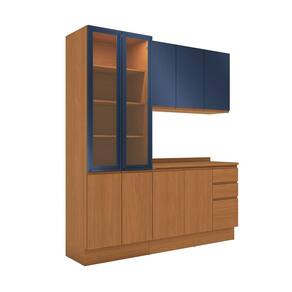 Cozinha Compacta Valence 9 Portas 3 Gavetas Canela e Azul - Marrom