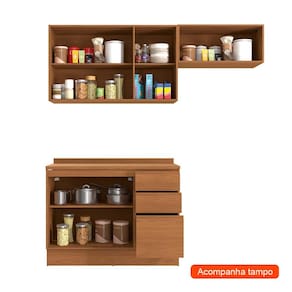 Que tal a Cozinha Valence?Com a Cozinha Valence, você tem tudo o que precisa em um único móvel para manter utensílios, louças e mantimentos sempre organizados e ao seu alcance. Os nichos espaçosos acomodam itens maiores, enquanto as gavetas são ideais para guardar talheres, panos de prato e pequenos acessórios do dia a dia. Além disso, o tampo oferece um suporte extra, perfeito para auxiliar no preparo das refeições ou até mesmo para apoiar itens decorativos. Tudo isso sem comprometer a harmonia do ambiente, já que tem um design charmoso e cor moderna que caem bem com os outros móveis e acessórios que já compõem o cantinho.