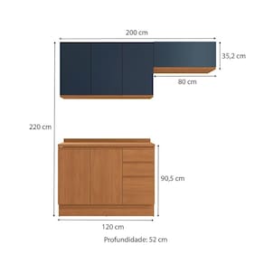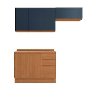 Cozinha Compacta Valence I 6 Portas 3 Gavetas Canela e Azul - Marrom