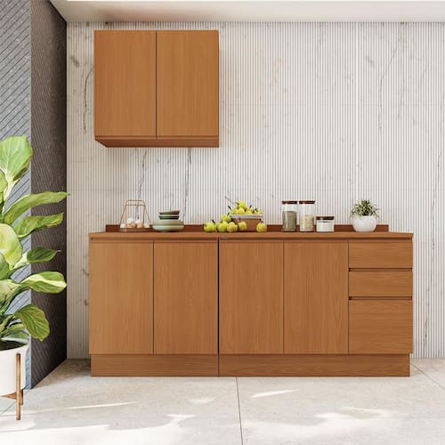 Cozinha Compacta Valence II 6 Portas 3 Gavetas Canela - Marrom