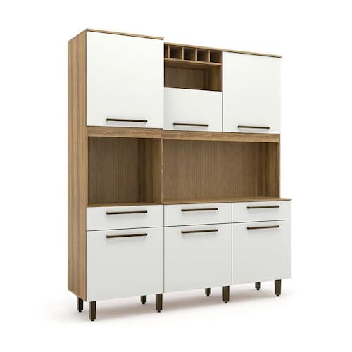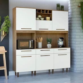 Cozinha Compacta Veneza 6 Portas 3 Gavetas Cinamomo e Off White