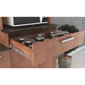 Tudo o que você precisa para manter o seu cantinho gourmet organizado e com um visual lindo pode ser encontrado na estrutura única da Cozinha Verdot. Com compartimentos protegidos por portas que recebem louças, panelas e alimentos, ela ainda conta com os nichos externos que mantém potes de temperos, garrafas e itens decorativos em ordem e fáceis de alcançar - claro, o tampo também é muito útil para ajudar na preparação dos alimentos ou para apoiar eletrodomésticos.