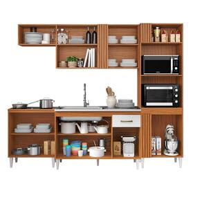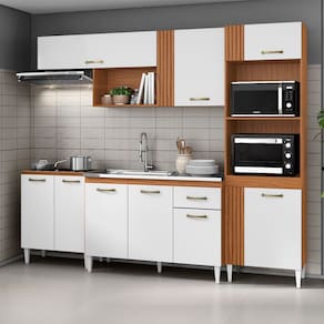 Características: Estrutura em MDP Acabamento em verniz texturizado 09 Portas com dobradiças metálicas 01 Gaveta com corrediças metálicas 03 Nichos para decoração e eletrodomésticos Puxadores de plástico Amplo espaço interno Pés de plástico *NÃO ACOMPANHA TAMPO, NEM CUBA*