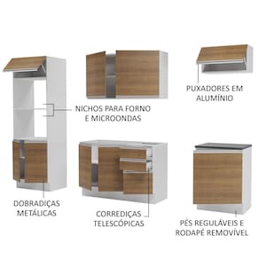 Feita em 100% MDF, possui ferragens de qualidade como puxadores em alumínio, dobradiças metálicas e corrediças telescópicas.