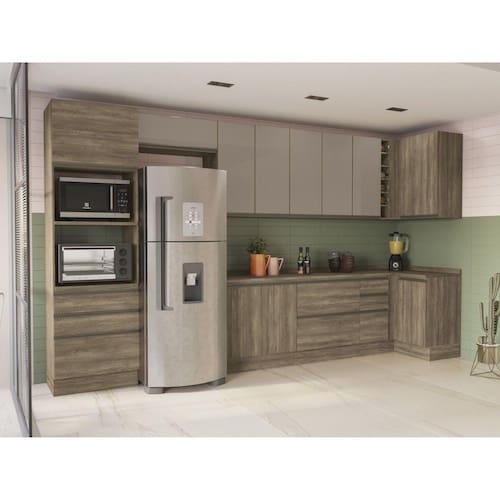 Para você que procura uma cozinha perfeita para preparar suas refeições em um ambiente prático e agradável, sem perder o bom gosto, a Kappesberg apresenta a cozinha Maxxi. Disponível nas cores Nogal com pintura touch, essa cozinha conta com espaços otimizados, facilitando o seu dia-a-dia. Possui puxadores de alumínio, corrediças telescópicas e módulos com vidro bronze, tornando o seu ambiente ainda mais bonito. Esse conjunto com 8 peças é uma excelente opção para a sua cozinha, pois conta com ótimo espaço interno que permite fácil organização de seus utensílios e alimentos. Acabamento da Prateleira: Pintura Escala de Brilho da Prateleira: Fosco Acabamento da Gaveta: Pintura Escala de Brilho da Gaveta: Fosco Material do Puxador da Gaveta: Alumínio Acabamento da Porta: Pintura Escala de Brilho da Porta: Fosco Material do Puxador da Porta: Alumínio Acompanha Tampo: Sim Ambiente Principal: Cozinha Balcão Acompanha Pia: Não codigo_ean: 7909903236215 Complexidade da Montagem: Média: pode ser montado por mais de uma pessoa e/ou necessite de maior conhecimento para montagem Cor: Nogal Cor do Produto: Nogal Escala de Brilho: Fosco Gaveta com Chave: Não Itens Inclusos: Balcão, aéreo, kit forno, Kit Ferragens e Manual de Instruções Manual de Especificação Técnica: https://product-hub-prd.madeiramadeira.com.br/813408/documents/ac5691e3-bc1f-4936-9a1a-ff58ddbdd24f1158873cb340.pdf Manual de Montagem e Instalação: https://product-hub-prd.madeiramadeira.com.br/813408/documents/0a7f8acc-02f5-42fb-aca5-5dcb4419c46d1143155g765.pdf Material da Dobradiça/Corrediça da Porta: Metálica Material da Gaveta: MDP Material da Porta: MDP Material da Prateleira: MDP Material do Tampo: MDP Material dos Pés: MDP Medida de cada item (A x L x P): tampo: 2,5x80x52; tampo: 2,5x120x52; tampo: 2,5x98x59; balcão: 88x80x52; balcão: 88x120x52; balcão: 88x98x59; kit forno: 240x70x52; aéreo: 90x80x37; aéreo: 90x120x37; aéreo: 90x98x59; aéreo: 30x80x37 Medida do Tampo (L x C x E): 2,5xx80x52 2,5x120x52 2,5x98x59 modular: Não Necessita Montagem: Sim O Balcão Acompanha Pia: Não Origem do Produto: Nacional Pés Reguláveis: Não Peso: 331,31 kg Peso Máximo por Gaveta: 6 kg Peso Máximo por Prateleira: 7 kg Possui Pés: Rodapé Possui Portas: Sim Possui Prateleiras: Sim Possui recorte para Cooktop: Não Possui Rodízio: Não Produto Montado: Sim Recomendações de Uso, Manutenção e Limpeza: Limpeza deverá ser realizada com pano limpo e ligeiramente umedecido em água ou álcool no MDP (recomendamos álcool etílico hidratado). Logo após, seque a superfície com um pano seco e macio. Mantenha o ambiente limpo e arejado. Sapatas Niveladoras: Não Sistema de Montagem: Parafuso Philips Suporta Até (kg): 40 kg Suporta Granito: Não Tipo de Corrediça da Gaveta: Metálica Telescópica Tipo de Dobradiça da Porta: Simples Tipo de Dobradiça/Corrediça da Porta: Simples Tipo de Puxador da Gaveta: Embutido Tipo de Puxador da Porta: Embutido