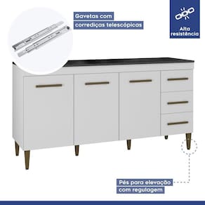 Tipo de Corrediça da Gaveta: Metálica Telescópica