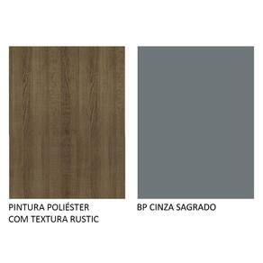 A estrutura é no padrão amadeirado Rustic. As portas e frentes possuem acabamento em Cinza e as partes internas das costas e das gavetas são brancas. São feitos em Pintura Poliéster ecológica, que consiste na aplicação de 7 camadas de proteção resistentes a álcool, água e calor.