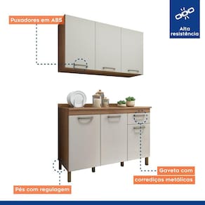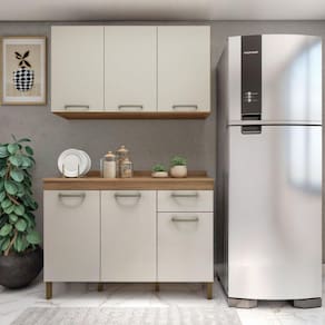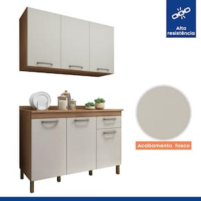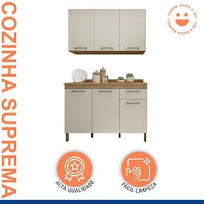 Descubra a união perfeita entre funcionalidade e design com nossa cozinha de 6 portas e uma gaveta. Cada detalhe foi pensado para otimizar seu espaço, oferecendo amplo armazenamento e organização sem abrir mão da elegância. Transforme sua cozinha em um ambiente onde cada elemento é uma expressão de sofisticação e praticidade. Acabamento da Prateleira: Pintura Escala de Brilho da Prateleira: Fosco Acabamento da Gaveta: Pintura Escala de Brilho da Gaveta: Fosco Material do Puxador da Gaveta: ABS Acabamento da Porta: Pintura Escala de Brilho da Porta: Semi-Brilho Material do Puxador da Porta: ABS Acabamento dos Pés: Pintura Acompanha Tampo: Sim Altura dos Pés: 13 cm Ambiente Principal: Cozinha Complexidade da Montagem: Alta: deve ser montado por um montador especializado Cor: Cinamomo/Off White Cor do Produto: Cinamomo/Off White Escala de Brilho: Fosco Espessura do Material da Estrutura: 12 mm Espessura do Tampo: 15 mm Gaveta com Chave: Não Itens Inclusos: 1 Cozinha Completa. Kit Ferragens e Manual de Montagem. Manual de Montagem e Instalação: https://product-hub-prd.madeiramadeira.com.br/903847/documents/66a6c02f-51b8-4a10-8b72-28becff7d2e81901250cozinhasuprema.pdf Material da Dobradiça/Corrediça da Porta: Metálica Material da Gaveta: MDP Material da Porta: MDP Material da Prateleira: MDP Material do Fundo: HDF Material do Tampo: MDP Material dos Pés: Plástico Medida de cada item (A x L x P): Balcão 120cm: 92cmx120cmx42cm - Aéreo 120cm: 65cmx120cmx30cm modular: Sim Necessita Montagem: Sim O Balcão Acompanha Pia: Não Origem do Produto: Nacional Pés Reguláveis: Sim Peso: 50 kg Peso Máximo por Gaveta: 5 kg Peso Máximo por Prateleira: 10 kg Possui Pés: 06 Possui Portas: Sim Possui Prateleiras: Sim Possui recorte para Cooktop: Não Possui Rodízio: Não Possui Vidro: Não Recomendações de Uso, Manutenção e Limpeza: Limpar com pano macio e levemente umedecido. Não utilizar solventes a base e de inflamáveis. Não utilizar produtos abrasivos. Sapatas Niveladoras: Sim Sistema de Montagem: Parafusos e Cavilhas. Tipo de Corrediça da Gaveta: Simples Tipo de Dobradiça da Porta: Simples Tipo de Puxador da Gaveta: Externo Tipo de Puxador da Porta: Externo