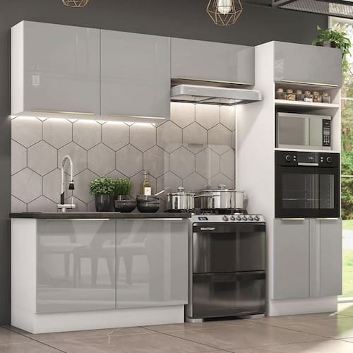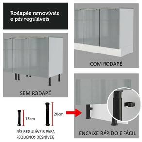Para completar, a cozinha conta com pés reguláveis em PVC e rodapé removível em MDP de fácil encaixe, para retirar na hora de realizar a limpeza.