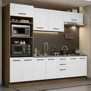 Composta por vários módulos separados, possui ótimo espaço disponível. Assim, você terá muito espaço para organizar todos os seus utensílios, pratos e mantimentos, deixando seu ambiente mais funcional e prático.