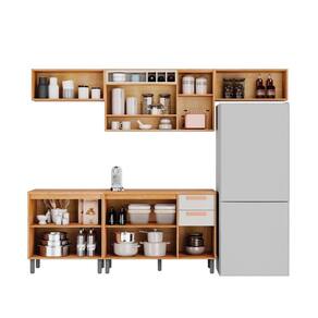Cozinha Completa 280cm Nápoles Em Mdp Off White Itatiaia Com design contemporâneo e detalhes sofisticados, a Cozinha Completa Nápoles de 280cm traz funcionalidade, elegância e organização para o seu dia a dia. Produzida em MDP com acabamento Off White e Cinamomo, ela é ideal para quem busca uma composição compacta sem abrir mão da qualidade. A cozinha é composta por 5 módulos bem distribuídos: ? Armário aéreo de 120cm com porta horizontal com pistão a gás, porta vertical e nicho com garrafeiro embutido, que une funcionalidade e estética com espaço para utensílios e itens decorativos; ? Dois armários aéreos de 80cm com 1 porta horizontal, ideal para complementar o armazenamento de louças, potes e mantimentos; ? Balcão de 120cm com 3 portas e 2 gavetas, com tampo de 25mm resistente a até 120?C e gavetas com corrediças telescópicas com trava de , perfeito para o uso diário; ? Balcão de 80cm com 2 portas, ideal como apoio para eletroportáteis ou organização de utensílios.