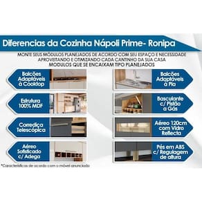 Imagens Meramente Ilustrativas. Não nos responsabilizamos pela montagem/instalação dos produtos. Todas as informações divulgadas são de responsabilidade exclusiva do fabricante/fornecedor. Quantidade de Portas: 1 Porta de Abrir Quantidade de Prateleiras: 1 Quantidade de nichos: 6 nichos Diferenciais dos Nichos: Nicho Garrafeiro Tipo de Acabamento da Pintura: Semi Brilho Vantagens Extras dos Moveis de Cozinha: Adega Tipo de puxador: ABS/PVC Tipo de Móvel: Armário Aéreo Ubicação do Móvel: Inferior Com Prateleiras Ajustáveis?: Não Pés Reguláveis?: Não Material das portas: Vidrio Tipo de Produto: N/A Certificação de Qualidade: Certificação de Qualidade Aprovada Garantia: 3 meses Material de Estrutura: 100% MDF Tipo de Pintura: Pintura em UV (Ultravioleta) Montagem do Produto: Desmontável Material p/ Abertura Portas: Pistão a Gás Necessita Montagem?: Sim Acompanha Manual de Instalação e Montagem?: Sim Possui Garantia Complementar de Fábrica após Prazo Legal: Não Quantidade de Gavetas: 0 Material da Estrutura: Madeira É kit?: Não é kit Condição do item: Fonte do produto: N/A Código universal de produto (GTIN): 7898319929289 Produto precisa de Montagem?: Sim, a montagem é simples mas sugerimos a contratação do nosso serviço de montagem (para os CEPs em que o serviço está disponível) ou de algum experiente de sua preferência Descrição do Tamanho: 1.00x:1.00x1.00 cm Estado de Origem: RJ País de origem: Nacional Peso Produto Com Embalagem (Kg): 82.91 Material para Filtro: N/I Cor Mobly: N/I Condição do Item: Numeral: 0 Não se Aplica: N/A Não Possui: Não Linha/Modelo: Cozinha Nápoli Cor Cnova: Grafite Cor Meli: Cinza-escuro Categoria - Sub: Cozinha Completa Categoria - Pai: Móveis de Cozinha Comnto Embalagem: 1.00 Largura Embalagem: 1.00 Altura Embalagem: 1.00 Kit: 1 Peso: 82.91 Kg Peso Real Kg: 82.91 Peso Cubado: 37.50 Volumes: 4 M3: 0.15 Comnto/Profundidade: 1 cm Largura: 1 cm Altura: 1 cm Tamanho Montado: Larg:1.00 x Comp/Prof:1.00 x Alt: 1.00 Comnto/Profundidade Montado: 1.00 Largura Montado: 1.00 Altura Montado: 1.00 MPN: 0 Cor Fabricante: Amendoa/Chumbo Marca: Ronipa Fabricante: Ronipa Linha: Cozinha Nápoli