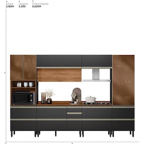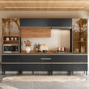 Em um lar, a cozinha é mais do que um espaço para cozinhar — é o coração das memórias, onde aromas e risadas se entrelaçam. Nossa nova linha de cozinhas moduladas de alto padrão, produzida em MDF com acabamento Textura Prime TX, foi pensada para transformar esse espaço em um cenário de sofisticação e praticidade. Acabamento da Prateleira: Pintura Escala de Brilho da Prateleira: Fosco Acabamento da Gaveta: Pintura Texturizada UV Escala de Brilho da Gaveta: Fosco Material do Puxador da Gaveta: Metal Acabamento da Porta: Pintura Texturizada UV Escala de Brilho da Porta: Fosco Material do Puxador da Porta: Metal Acabamento dos Pés: Pintura Acompanha Rodapé Decorativo: Não Acompanha Tampo: Sim Altura dos Pés: 17 cm Altura Máxima dos Pés: 17.0000 Ambiente Principal: Cozinha Balcão Suporta Pia: Sim codigo_ean: 7900288187505 Complexidade da Montagem: Alta: deve ser montado por um montador especializado Cor: Nogueira/Carbono Prime Cor do Produto: Nogueira/Carbono Prime Cor Flex: Não Cor Interna: Nogueira Escala de Brilho: Fosco Espessura do Material da Estrutura: 15 mm Espessura do Tampo: 20 mm Gaveta com Chave: Não Informações Complementares: As cores do produto podem sofrer variações de tonalidade de acordo com as configurações do seu dispositivo. Imagens meramente ilustrativas. Itens para decorar o produto e o ambiente não acompanham o produto. Caixa revestida por plástico termoencohível e p Itens Inclusos: 1 Cozinha Completa, Kit Ferragem e Manual de Montagem Linha ou Coleção: Proença Manual de Especificação Técnica: https://product-hub-prd.madeiramadeira.com.br/678904758/documents/10d13200-8def-48d9-a356-ad213d3981ef3038892302817513997765135.pdf Manual de Montagem e Instalação: https://product-hub-prd.madeiramadeira.com.br/678904758/documents/35177e13-8e02-4e6e-8367-dc25ec6c93d5303889130281751399764469.pdf Marca: Demóbile Material da Corrediça: Alumínio Material da Dobradiça/Corrediça da Porta: Metálica Material da Gaveta: MDF Material da Porta: MDF Material da Prateleira: MDF Material do Fundo: HDF Material do Tampo: MDF Material dos Pés: Polipropileno Medida de cada item (A x L x P): Cristaleira (218,5 x 60 x 52) / Balcão (93 x 80,2 x 52) / Armário Aéreo (36 x 80 x 52) / Balcão Pia (84 x 119,4 x 52) / Tampo Balcão Pia (9 x 119,5 x 52) / Armário Aéreo (72 x 120 x 52) / Paneleiro (218,5 x 70 x 52) modular: Sim Montagem Flex: Não Necessita Montagem: Sim O Balcão Acompanha Pia: Não Origem do Produto: Nacional Pés Reguláveis: Sim Peso: 250,56 kg Peso Máximo por Gaveta: 10 kg Peso Máximo por Prateleira: 10 kg Possui Pés: 17 Possui Portas: Sim Possui Prateleiras: Sim Possui recorte para Cooktop: Não Possui Rodízio: Não Possui Vidro: Sim Produto Montado: Sim Recomendações de Uso, Manutenção e Limpeza: Higienizar com flanela limpa e seca. Sapatas Niveladoras: Não Sistema de Montagem: Parafusos e cavilhas. Suporta Até (kg): 240 kg Tamanho Indicado da Pia: 120CM Tipo de Corrediça da Gaveta: Metálica Telescópica Tipo de Dobradiça da Porta: Soft close Tipo de Dobradiça/Corrediça da Porta: Soft Close Tipo de Puxador da Gaveta: Externo Tipo de Puxador da Porta: Externo