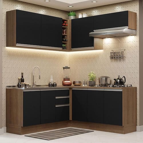 Esta Cozinha Completa de Canto da linha Glamy oferece conforto e modernidade à sua casa, bem como a qualidade de fabricação dos produtos Madesa.