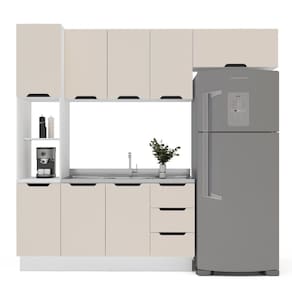 A cozinha 4 peças Meena da Politorno Móveis é perfeita para quem busca funcionalidade e elegância. Com 224,5 cm de altura, 240 cm de largura e 52 cm de profundidade, ela conta com 1 balcão com 3 gavetas e 2 portas, 3 armários aéreos, 1 armário aéreo basculante e 1 paneleiro com nichos, oferecendo amplo espaço para organizar utensílios, eletrodomésticos e mantimentos. Seu design sofisticado, combinado com materiais de alta qualidade, proporciona um ambiente moderno e prático. As corrediças telescópicas garantem deslizamento suave das gavetas, enquanto o acabamento em pintura UV assegura durabilidade. O tampo não acompanha o produto, permitindo personalização conforme sua necessidade. Possui rodapé. Acabamento da Prateleira: Finish Foil Escala de Brilho da Prateleira: Semi-Fosco Acabamento da Gaveta: Finish Foil Escala de Brilho da Gaveta: Semi-Fosco Material do Puxador da Gaveta: Plástico Acabamento da Porta: Finish Foil Escala de Brilho da Porta: Semi-Fosco Material do Puxador da Porta: Plástico Acompanha Rodapé Decorativo: Sim Acompanha Tampo: Não Ambiente Principal: Cozinha Balcão Suporta Pia: Não codigo_ean: 7900288148407 Complexidade da Montagem: Média: pode ser montado por mais de uma pessoa e/ou necessite de maior conhecimento para montagem Cor: Branco/Creme Cor do Produto: Branco/Creme Cor Interna: Branco Escala de Brilho: Semi-Fosco Gaveta com Chave: Não Itens Inclusos: 1 Cozinha, Kit Ferragens e Manual de Montagem Linha ou Coleção: Meena Manual de Montagem e Instalação: https://product-hub-prd.madeiramadeira.com.br/977936/documents/f343aae3-0cf1-467e-9236-8f3469f6470f288945762241746021969653.pdf Marca: Politorno Material da Dobradiça/Corrediça da Porta: Alumínio Material da Gaveta: MDP Material da Porta: MDP Material da Prateleira: MDP Material dos Pés: MDF Medida de cada item (A x L x P): Balcão 81cm x 120cm x 50,5 cm; Aéreo 66 cm x 120 cm x 30,5 cm; Basculante 36 cm x 80 cm x 30,5xm; Paneleiro 224,5cm x 40cm x 52cm modular: Não Necessita Montagem: Sim O Balcão Acompanha Pia: Não Origem do Produto: Nacional Pés Reguláveis: Não Peso: 93,13 kg Peso Máximo por Gaveta: 5 kg Peso Máximo por Prateleira: 3 kg Possui Pés: Rodapé Possui Portas: Sim Possui Prateleiras: Sim Possui recorte para Cooktop: Não Possui Rodízio: Não Produto Montado: Sim Recomendações de Uso, Manutenção e Limpeza: Utilize um pano macio umedecido com água e sabão neutro, seguido de pano seco. Não utilize produtos químicos ou abrasivos para limpeza, pois estes danificam o revestimento do móvel. Sapatas Niveladoras: Sim Sistema de Montagem: Cavilha, Parafuso, Minifix e prego Suporta Até (kg): 30 kg Tamanho Indicado do Tampo: 120x52 Tipo de Corrediça da Gaveta: Metálica Telescópica Tipo de Dobradiça da Porta: Soft close Tipo de Puxador da Gaveta: Externo Tipo de Puxador da Porta: Externo