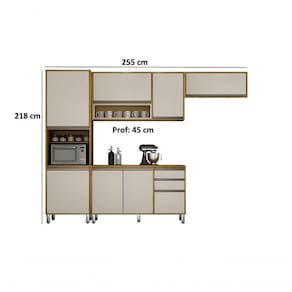Você nunca imaginou que sua cozinha pudesse ficar tão bonita e organizada. A cozinha Eduarda tem a estrutura em MDP/MDF de 15mm, possui 9 portas com dobradiças metálicas, puxadores em alumínio bronze, 2 gavetas uma contem divisor de talheres, esse modelo conta com paneleiro com espaço para micro-ondas, portas basculantes com pistão a gás e pés reguláveis.