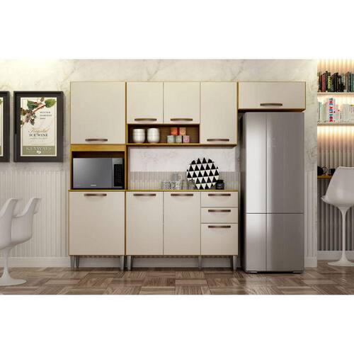 Você nunca imaginou que sua cozinha pudesse ficar tão bonita e organizada.A Cozinha Maísa é fabricada em MDP de 12mm, possui 9 portas com dobradiças metálicas, puxadores ABS bronze, 2 gavetas com corrediças telescópicas, pés reguláveis, e paneleiro com espaço para micro-ondas.