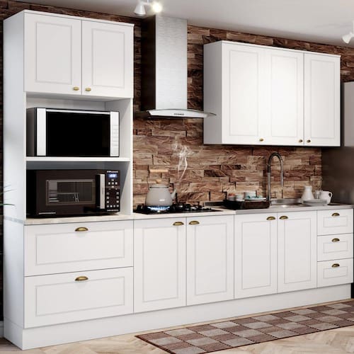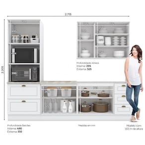 +Cozinha+Completa+4+Pe%E7as+com+A%E9reo+Emily+possui+2.205mm+de+Altura%2C+2.715mm+de+Largura+e+510mm+de+Profundidade.+Um+novo+conceito+inspirado+nas+cl%E1ssicas+cozinhas+estilo+americano%2C+seu+design+contempor%E2neo+embeleza+qualquer+ambiente.+Projetado+para+proporcionar+praticidade+e+funcionalidade+ao+uso.+Produto+100%25+MDF%2C+disponibiliza+de+v%E1rias+op%E7%F5es+de+m%F3dulos+que+possibilitam+diversas+composi%E7%F5es+lineares%2C+possui+detalhes+usinados+em+baixo+relevo+nas+portas+e+gavetas%2C+puxadores+nos+balc%F5es+em+formato+de+concha+e+nos+a%E9reos+s%E3o+pontuais%2C+ambos+na+Cr+ouro+velho%2C+possui+dobradi%E7as+de+35mm+com+amortecimento%2C+gavetas+com+corredi%E7as+telesc%F3picas+proporcionando+maior+abertura.+A+sua+instala%E7%E3o+pode+ser+feita+tanto+com+o+uso+dos+rodap%E9s+ou+suspensa. Acabamento da Prateleira: Pintura Texturizada UV Escala de Brilho da Prateleira: Fosco Acabamento da Gaveta: Pintura Texturizada UV Escala de Brilho da Gaveta: Fosco Material do Puxador da Gaveta: Metal Acabamento da Porta: Pintura Texturizada UV Escala de Brilho da Porta: Fosco Material do Puxador da Porta: Metal Acabamento: Pintura UV Acabamento dos Pés: Pintura Acompanha Tampo: Não Altura: 220 cm Altura dos Pés: 14 cm calculo: unidade Complexidade da Montagem: Alta: deve ser montado por um montador especializado Cr: Branco Cr do Produto: Branco Escala de Brilho: Fosco Estilo: Contemporâneo Gaveta com Chave: Não Itens Inclusos: 1 Torre Quente, 1 Balcão 2 portas com Tampo para Cooktop, 1 Balcão para Pia, 1 Aéreo, Kit Ferragens e Manual de Montagem Largura: 271 cm Linha ou Coleção: Emily Manual de Montagem e Instalação: https://cdn2.madeiramadeira.com.br/atributo/m-veis-henn/629968-ce369-cozinha-compacta-emily-4p-s-c-a-reo-3pts.pdf Material da Gaveta: MDF Material da Porta: MDF Material da Prateleira: MDF Material do Fundo: MDF Material dos Pés: MDF Material Principal: MDF Medida de cada item (A x L x P): Torre Quente: 220,5cm x 71,5cm x 51cm; Balcão 2 portas com Tampo para Cooktop: 82cm x 80cm x 51cm; Balcão para Pia: 82cm x 120cm x 51cm; Aéreo: 83cm x 120cm x 32,5cm; Medida do Recorte para Cooktop: 51,5cm x 36cm Necessita Montagem: Sim O Balcão Acompanha Pia: Não Origem do Produto: Nacional Pés Reguláveis: Não Peso: 169 kg Peso Máximo por Gaveta: 3 kg Peso Máximo por Prateleira: 8 Possui Gavetas: 05 Possui Pés: Rodapé Possui Portas: 09 Possui Prateleiras: 05 Possui recorte para Cooktop: Sim Possui Rodízio: Não Profundidade: 51 cm Quantidade de Peças: 04 Recomendações de Uso, Manutenção e Limpeza: Para limpeza de seu móvel, use uma flanela seca ou umedecida. Não utilize produtos químicos que possam danificar o produto. Sapatas Niveladoras: Não Sistema de Montagem: Parafusos e Cavilhas status-cadastro: Aprovado Tamanho: Tamanho Indicado da Pia: 120cm x 53,5cm Tamanho Indicado do Tampo: Acompanha com furação para Cooktop Tipo de Corrediça da Gaveta: Metálica Telescópica Tipo de Dobradiça da Porta: Metálica Tipo de Porta: Bater Tipo de Puxador da Gaveta: Externo Tipo de Puxador da Porta: Externo
