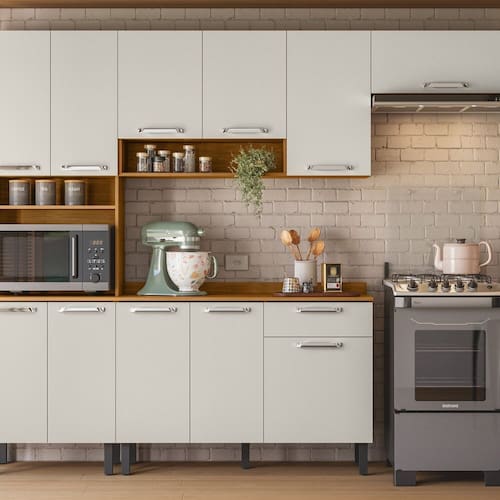 Cozinha completa itatiaia vegas, feita para encantar a sua casa! com ótimo aproveitamento de espaço, a linha vegas oferece módulos com soluções práticas e eficientes, para organizar e manter por perto acessórios diversos como louças, copos, panelas e pequenos eletrodomésticos. Moderno e funcional: design diferenciado. Mais espaço e organização: espaços internos funcionais. Ergonomia e facilidade ao puxar: exclusivos puxadores ergonômicos metalizados. cozinha completa itatiaia vegas! com um design moderno e funcional, a linha vegas da itatiaia oferece mais espaço e organização para a sua cozinha. Os exclusivos puxadores ergonômicos metalizados proporcionam ergonomia e facilidade ao puxar, tornando o uso diário mais prático e confortável. Acabamento da Prateleira: Pintura Escala de Brilho da Prateleira: Fosco Acabamento da Gaveta: Pintura Escala de Brilho da Gaveta: Fosco Material do Puxador da Gaveta: ABS Acabamento da Porta: Pintura Escala de Brilho da Porta: Fosco Material do Puxador da Porta: ABS Acabamento dos Pés: Polipropileno Acompanha Tampo: Sim Altura dos Pés: 15 cm Altura Máxima dos Pés: 15.0000 Ambiente Principal: Cozinha Balcão Suporta Pia: Sim codigo_ean: 7900288098313 Complexidade da Montagem: Alta: deve ser montado por um montador especializado Cor: Cinamomo/Off White Cor do Produto: Cinamomo/Off White Cor Interna: Cinamomo Escala de Brilho: Fosco Espessura do Material da Estrutura: 15 mm Espessura do Tampo: 15 mm Gaveta com Chave: Não Itens Inclusos: 1 Paneleiro, 2 Armário, Balcão, 1 Manual de Montagem Linha ou Coleção: Vegas Manual de Montagem e Instalação: https://product-hub-prd.madeiramadeira.com.br/982295/documents/02970a89-2579-4961-a80c-ad83033e63e0275801326791742572464448.pdf Marca: Itatiaia Material da Dobradiça/Corrediça da Porta: Metálica Material da Gaveta: MDP Material da Porta: MDP Material da Prateleira: MDP Material do Fundo: HDF Material do Tampo: MDP Material dos Pés: Polipropileno Medida de cada item (A x L x P): Paneleiro (210x64x42,5), Armário 120 (69x120x30), Armario 70 (33,8x70x30), Balcão (90x120x41,3) Necessita Montagem: Sim O Balcão Acompanha Pia: Não Origem do Produto: Nacional Pés Reguláveis: Sim Peso: 104 kg Peso Máximo por Gaveta: 5 kg Peso Máximo por Prateleira: 12 kg Possui Pés: 09 Possui Portas: Sim Possui Prateleiras: Sim Possui recorte para Cooktop: Não Possui Rodízio: Não Produto Montado: Sim Recomendações de Uso, Manutenção e Limpeza: PARA LIMPAR CORRETAMENTE SEUS ARMÁRIOS DE MADEIRA, USE SEMPRE UM PANO LISO E LEVEMENTE UMEDECIDO COM ÁGUA Sapatas Niveladoras: Sim Sistema de Montagem: PARAFUSO/CAVILHA Suporta Até (kg): 150 kg Tamanho Indicado da Pia: 120x41 Tipo de Corrediça da Gaveta: Metálica Telescópica Tipo de Dobradiça da Porta: Simples Tipo de Puxador da Gaveta: Externo Tipo de Puxador da Porta: Externo