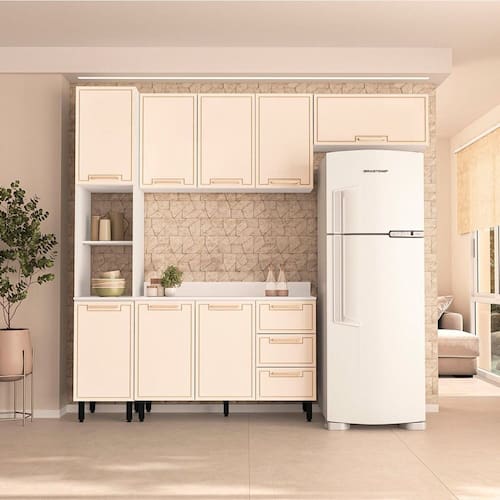 Modular : Não Peso (kg) : 112.67 Garantia : 06 Meses Altura (cm) : 224.5 Acabamento : Pintura UV Largura (cm) : 240 Possui Pés : 9 Possui Vidro : Não Possui Portas : Sim Tipo de Porta : Misto (Bater e Basculante) Altura dos Pés : 15 Pés Reguláveis : Sim Possui Gavetas : Sim Possui Rodízio : Não Suporta Até (kg) : 30 Acompanha Tampo : Sim Profundidade (cm) : 52 Escala de Brilho : Semi-Fosco Gaveta com Chave : Não Material dos Pés : Plástico Serviço Montagem : 114259443 Material da Porta : MDF/MDP Material do Tampo : MDF/MDP Origem do Produto : Nacional Acabamento dos Pés : Pintura Ambiente Principal : Cozinha Balcão Suporta Pia : Sim Material da Gaveta : MDF/MDP Material Principal : MDF/MDP Possui Prateleiras : Sim Acabamento da Porta : Finish Foil Quantidade de Peças : 4 Sapatas Niveladoras : Sim Acabamento da Gaveta : Finish Foil Balcão Acompanha Pia : Não Material da Prateleira : MDF/MDP Peso Máximo por Gaveta : 5 Acabamento da Prateleira : Finish Foil Tipo de Puxador da Porta : Externo Escala de Brilho da Porta : Semi-Fosco Tipo de Puxador da Gaveta : Externo Escala de Brilho da Gaveta : Semi-Fosco Peso Máximo por Prateleira : 3 Tipo de Armário de Cozinha : Cozinha Compacta Possui Recorte para Cooktop : Não Tipo de Corrediça da Gaveta : Metálica Telescópica Material do Puxador da Porta : Alumínio Material do Puxador da Gaveta : Alumínio Escala de Brilho da Prateleira : Semi-Fosco Medida de Cada Item (A x L x P) (novo) : Balcão: 92,5x120x52; Aéreo 66x120x30,5; Basculante 36x80x30,5; Paneleiro 224,5x40x52 Material da Dobradiça/Corrediça da Porta : Alumínio Marca : Politorno Cor Interna : Branco Cor : Branco/Creme Cor do Produto : Branco/Creme Itens Inclusos : 1 Cozinha, Kit de Ferragens e Manual de Montagem Cor Predominante : Bege Linha ou Coleção : Amara Quantidade de Prateleiras : 03 Prateleiras Quantidade de Portas : 8 Portas Quantidade de Gavetas : 03 Gavetas Quantidade do Produto : 4