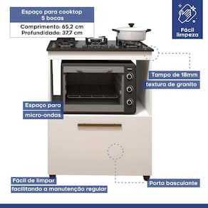 Dê um toque especial à sua cozinha com o nosso conjunto de móveis, que inclui um balcão para cooktop de 5 bocas com nicho para micro-ondas, ideal para manter sua cozinha organizada e eficiente. O kit também conta com um armário aéreo de 2 portas para guardar seus utensílios e mantimentos, além de um armário aéreo com porta basculante que abre para cima, ideal para deixar sua cozinha mais funcional, organizada e cheia de personalidade! Acabamento da Porta: Pintura Escala de Brilho da Porta: Semi-Brilho Material do Puxador da Porta: MDF Acabamento dos Pés: Pintura Acompanha Tampo: Sim Altura dos Pés: 9 cm Ambiente Principal: Cozinha Complexidade da Montagem: Alta: deve ser montado por um montador especializado Cor: Branco Cor do Produto: Branco Escala de Brilho: Semi-Brilho Espessura do Tampo: 15 mm Itens Inclusos: 1 Cozinha Completa. Kit Ferragens e Manual de Montagem. Manual de Montagem e Instalação: https://product-hub-prd.madeiramadeira.com.br/932748/documents/409f5858-8a4b-4792-952e-7905be267d7922404687321724159129792.pdf Material da Dobradiça/Corrediça da Porta: Metálica Material da Porta: MDP Material do Tampo: MDP Material dos Pés: ABS Medida de cada item (A x L x P): Balcão: 92cmx74cmx49cm Aereo 80cm: 68cmx80cmx30cm Aereo Geladeira: 30cmx75,5cmx28,5cm Medida do Recorte para Cooktop: 65,2cmx38cm modular: Sim Necessita Montagem: Sim O Balcão Acompanha Pia: Não Origem do Produto: Nacional Pés Reguláveis: Não Peso: 42,5 kg Possui Pés: 04 Possui Portas: Sim Possui Prateleiras: Não Possui recorte para Cooktop: Sim Possui Rodízio: Não Possui Vidro: Não Recomendações de Uso, Manutenção e Limpeza: Limpar com pano macio e levemente umedecido. Não utilizar solventes a base e de inflamáveis. Não utilizar produtos abrasivos. Sapatas Niveladoras: Não Sistema de Montagem: Parafusos e Cavilhas. Suporta Até (kg): 70 kg Tamanho Indicado da Pia: . Tipo de Dobradiça da Porta: Simples Tipo de Puxador da Porta: Externo