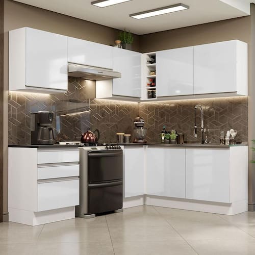 Esta Cozinha de Canto da linha Acordes da Madesa é a escolha perfeita para um ambiente mais moderno e espaçoso.