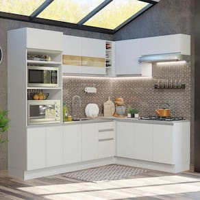 Muito conforto, espaço de sobra e acabamento de alta qualidade. Esses são alguns dos principais destaques desta Cozinha Completa de Canto da linha Glamy da Madesa.