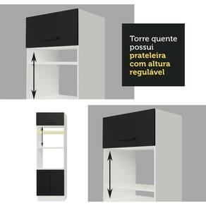 O acabamento da estrutura é branco e o das portas e frentes é preto. É feito em Pintura Poliéster com 7 camadas que protegem o móvel dos efeitos do álcool da água e do calor.