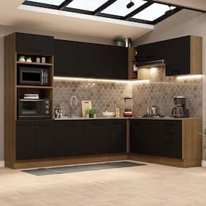 Muito espaço disponível e design moderno são os grandes destaques da Cozinha de Canto Agata da Madesa.