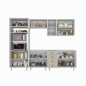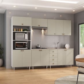 Apresentamos a linha de cozinha Maranello, uma combinação perfeita de design e funcionalidade! Feita 100% em MDF BP de alta qualidade, a Maranello traz a durabilidade que você procura para o dia a dia. Com amplo espaço interno, você terá a liberdade de organizar utensílios e mantimentos com facilidade. As corrediças telescópicas suaves e dobradiças com amortecedores, garantem uma experiência de abertura e fechamento de portas e gavetas totalmente silenciosa e segura. O toque especial está nos puxadores orgânicos, que além de ergonômicos, dão uma elegância natural ao ambiente. Disponível em uma seleção de cores incríveis, a Maranello transforma sua cozinha em um espaço moderno e acolhedor! Acabamento da Prateleira: BP Melamínico Escala de Brilho da Prateleira: Fosco Acabamento da Gaveta: BP Melamínico Escala de Brilho da Gaveta: Fosco Material do Puxador da Gaveta: ABS Acabamento da Porta: BP Melamínico Escala de Brilho da Porta: Fosco Material do Puxador da Porta: ABS Acabamento dos Pés: Cromado Acompanha Tampo: Não Altura dos Pés: 13 cm Altura Máxima dos Pés: 13.0000 Ambiente Principal: Cozinha Balcão Suporta Pia: Sim codigo_ean: 7900288018496 Complexidade da Montagem: Média: pode ser montado por mais de uma pessoa e/ou necessite de maior conhecimento para montagem Cor: Branco/Panna Cor do Produto: Branco/Panna Cor Interna: Branco Escala de Brilho: Fosco Espessura do Material da Estrutura: 15 mm Gaveta com Chave: Não Itens Inclusos: 1 Torre 80cm, 1 Balcao 120cm, 1 Balcao 80cm, 1 Aereo 120cm, 1 Basculantes 80cm e manual de montagem Linha ou Coleção: Maranello Manual de Montagem e Instalação: https://product-hub-prd.madeiramadeira.com.br/969411/documents/56af3d08-7935-4b2a-9904-f0813ae393eb253905294517308470801807.pdf Marca: RR Móveis Material da Dobradiça/Corrediça da Porta: Metálica Material da Gaveta: MDF Material da Porta: MDF Material da Prateleira: MDF Material dos Pés: Aço Medida de cada item (A x L x P): Torre 220,5x80x53; Balcao 84x120x53; Balcao 84x80x53; Aereo 71x120x37; Basculante 36x80x37 Necessita Montagem: Sim O Balcão Acompanha Pia: Não Origem do Produto: Nacional Pés Reguláveis: Sim Peso: 200 kg Peso Máximo por Gaveta: 10 kg Peso Máximo por Prateleira: 15 kg Possui Pés: 12 Possui Portas: Sim Possui Prateleiras: Sim Possui recorte para Cooktop: Não Possui Rodízio: Não Produto Montado: Sim Recomendações de Uso, Manutenção e Limpeza: Pano umido Sapatas Niveladoras: Não Sistema de Montagem: Parafusos e cavilhas Tamanho Indicado do Tampo: 200x53 Tipo de Corrediça da Gaveta: Metálica Telescópica Tipo de Dobradiça da Porta: Soft close Tipo de Puxador da Gaveta: Externo Tipo de Puxador da Porta: Externo Marca: RR Móveis