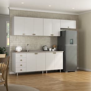 Apresentamos a linha de cozinha Maranello, uma combinação perfeita de design e funcionalidade! Feita 100% em MDF BP de alta qualidade, a Maranello traz a durabilidade que você procura para o dia a dia. Com amplo espaço interno, você terá a liberdade de organizar utensílios e mantimentos com facilidade. As corrediças telescópicas suaves e dobradiças com amortecedores, garantem uma experiência de abertura e fechamento de portas e gavetas totalmente silenciosa e segura. O toque especial está nos puxadores orgânicos, que além de ergonômicos, dão uma elegância natural ao ambiente. Disponível em uma seleção de cores incríveis, a Maranello transforma sua cozinha em um espaço moderno e acolhedor! Acabamento da Prateleira: BP Melamínico Escala de Brilho da Prateleira: Fosco Acabamento da Gaveta: BP Melamínico Escala de Brilho da Gaveta: Fosco Material do Puxador da Gaveta: ABS Acabamento da Porta: BP Melamínico Escala de Brilho da Porta: Fosco Material do Puxador da Porta: ABS Acabamento dos Pés: Cromado Acompanha Tampo: Não Altura dos Pés: 13 cm Altura Máxima dos Pés: 13.0000 Ambiente Principal: Cozinha Balcão Suporta Pia: Sim codigo_ean: 7900288018410 Complexidade da Montagem: Média: pode ser montado por mais de uma pessoa e/ou necessite de maior conhecimento para montagem Cor: Branco Cor do Produto: Branco Cor Interna: Branco Escala de Brilho: Fosco Espessura do Material da Estrutura: 15 mm Gaveta com Chave: Não Itens Inclusos: 1 Balcao 120cm, 1 Aereo 120cm, 1 Balcao 80cm, 1 Aereo 80cm, 1 Basculante 80cm e manual de montagem Linha ou Coleção: Maranello Manual de Montagem e Instalação: https://product-hub-prd.madeiramadeira.com.br/969403/documents/e0536bf3-68d2-4c99-89bd-ffa7b034eb36253816394517308454895214.pdf Marca: RR Móveis Material da Dobradiça/Corrediça da Porta: Metálica Material da Gaveta: MDF Material da Porta: MDF Material da Prateleira: MDF Material dos Pés: Aço Medida de cada item (A x L x P): Balcao 84x120x53; Aereo 71x120x37; Balcao 84x80x53; Aereo 71x80x37; Basculante 36x80x37 Necessita Montagem: Sim O Balcão Acompanha Pia: Não Origem do Produto: Nacional Pés Reguláveis: Sim Peso: 160 kg Peso Máximo por Gaveta: 10 kg Peso Máximo por Prateleira: 15 kg Possui Pés: 08 Possui Portas: Sim Possui Prateleiras: Sim Possui recorte para Cooktop: Não Possui Rodízio: Não Produto Montado: Sim Recomendações de Uso, Manutenção e Limpeza: Pano umido Sapatas Niveladoras: Não Sistema de Montagem: Parafusos e cavilhas Tamanho Indicado do Tampo: 200x53 Tipo de Corrediça da Gaveta: Metálica Telescópica Tipo de Dobradiça da Porta: Soft close Tipo de Puxador da Gaveta: Externo Tipo de Puxador da Porta: Externo Marca: RR Móveis